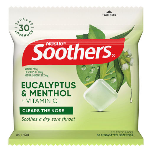 SOOTHERS Butter-Menthol medicated throat lozenges provide comforting throat relief by combining mild menthol with a great distinctive taste that Australians know and love.